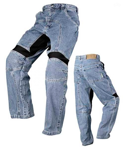 Делается на основе штанов или джинс. Ткань армируется специальными нитками для защиты от истирания, защитные вставки съёмные и не сильно выступают наружу, обеспечивая меньший уровень защиты в сравнении с прочими видами. Предполагается, что в городе этого должно хватить. Часто добавляются эластичные вставки для возможности залезать и слезать с байка. Версия для путешествий делается на основе городской и также подразумевает дополнительные фишки (типа влагозащиты) и относительное удобство передвижения отдельно от мотоцикла. Как и с куртками, вместо вставок можно использовать небольшие наколенники или же использовать полноценные наколенники с обычными штанами.