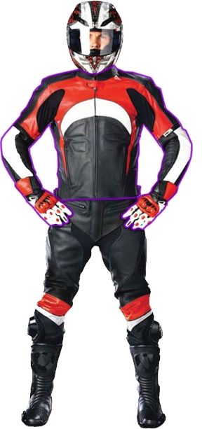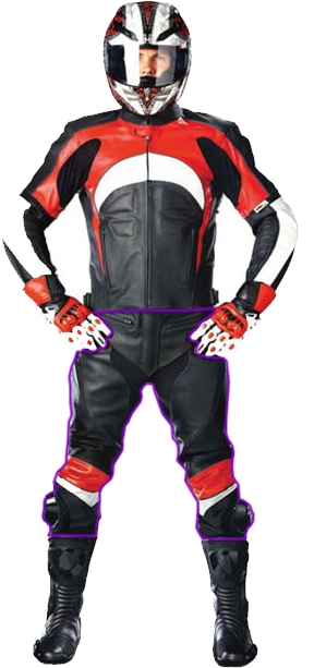 Так выглядит мото-комбинезон для трека. Куртка и штаны - единое целое. Облегчённый, но защищающий. Обратите внимание на «горб» на спине - он нужен для улучшения аэродинамики.