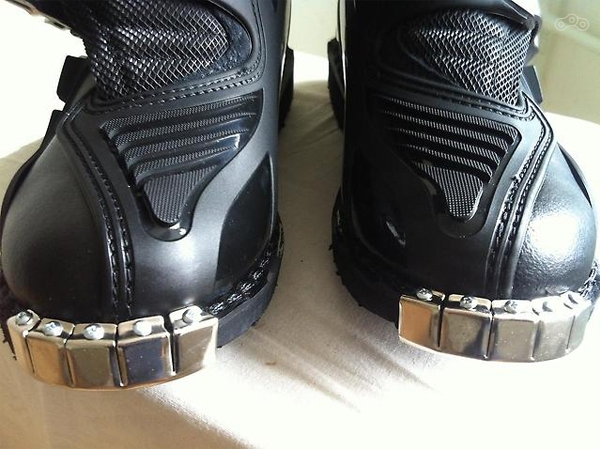 Слайдер им не нужен, зато площадка для переключения как правило усилена и помимо этого есть и особая деталь, которой нет у других мотобот. Это - накладка спереди. Я уже говорил что в мотокроссе ботинки играют весьма важную роль. Взгляните на картинку и поймёте, насколько важную: