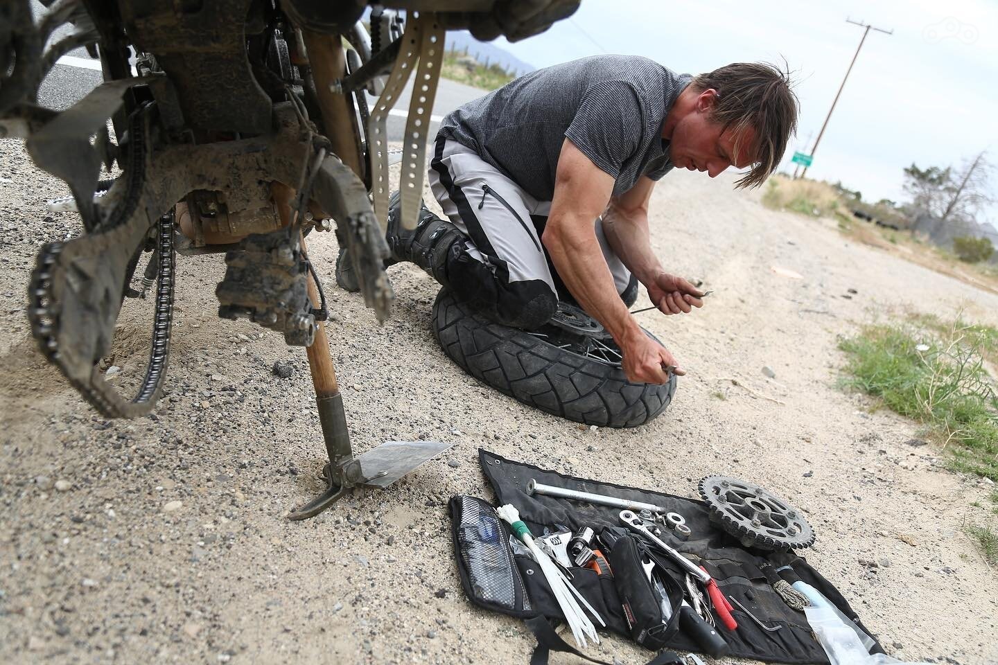 Если отправляетесь в настоящую глушь — добавьте запасные рычаги сцепления и переключения передач, запасные тросы сцепления и газа, а также маленькую бутылочку герметика борта шин.