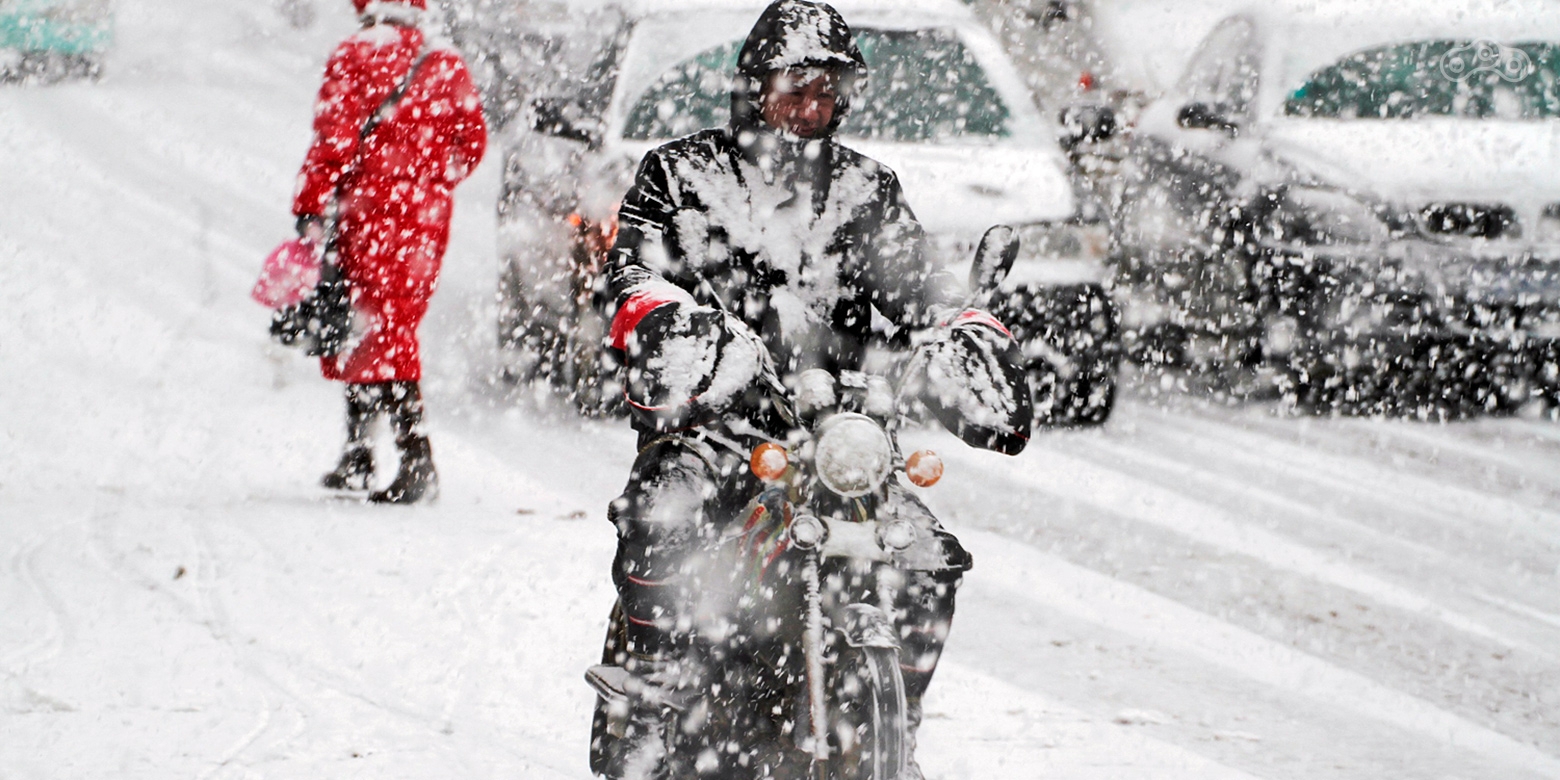 С приходом снега средняя скорость передвижения на мотоцикле значительно снижается