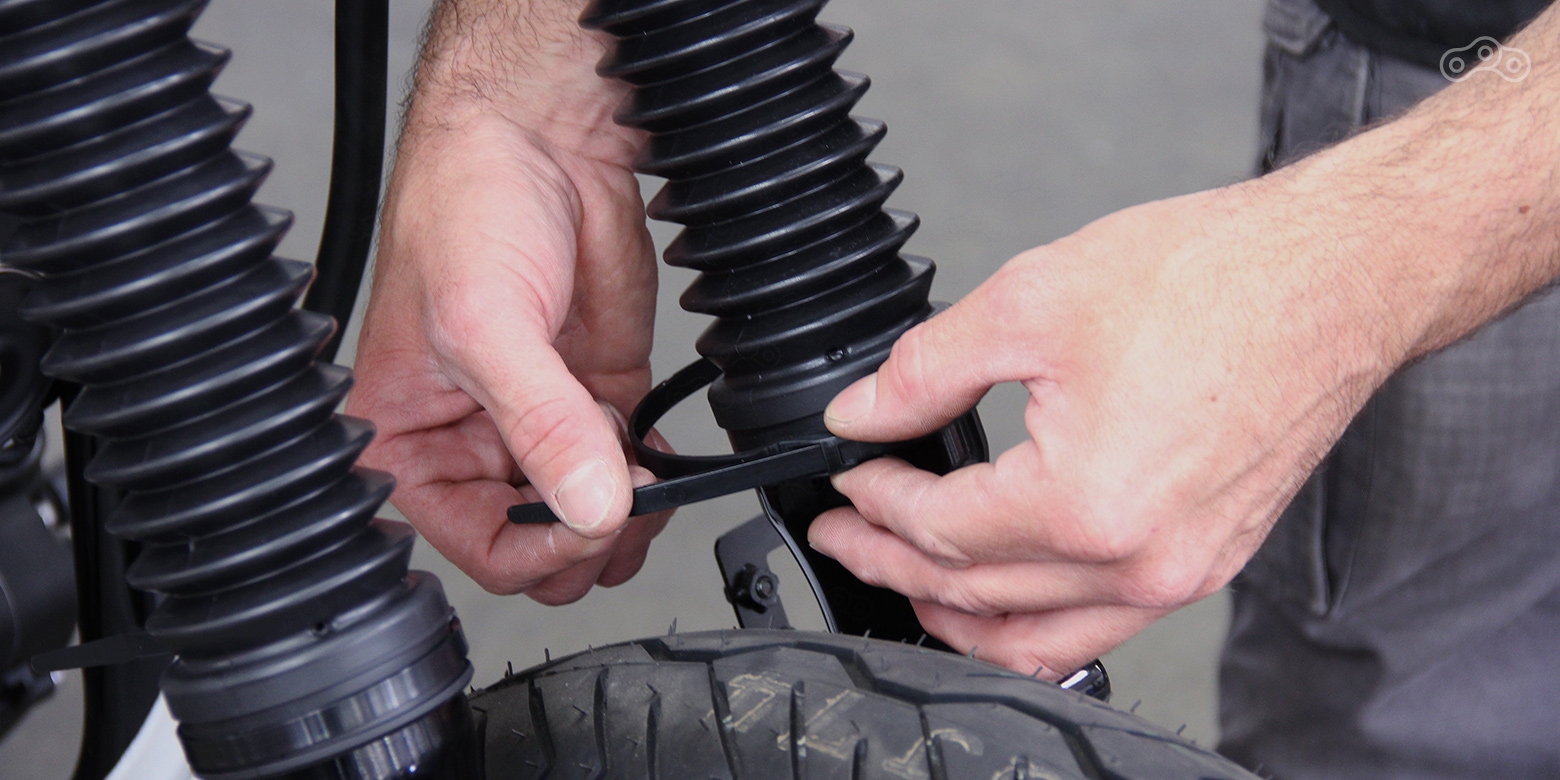 Помимо этого, имеет смысл защитить и сальники вилки, зимой они особенно подвержены риску. Можно приобрести специальные щитки именно под ваш мотоцикл, а можно просто отрезать часть пластиковой бутылки и закрепить ее хомутом на пере. А вот резиновые гофры, полностью закрывающие рабочие поверхности вилки, лучше обходить стороной – под ними конденсируется влага и только ускоряет процесс коррозии, хотя от пескоструя на трассе они защищают лучше прочих решений.