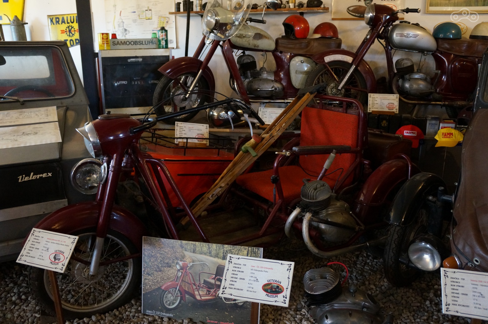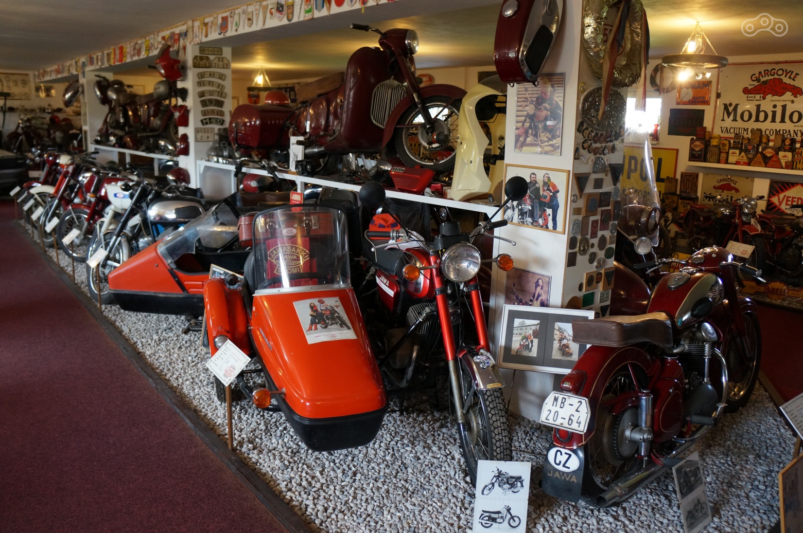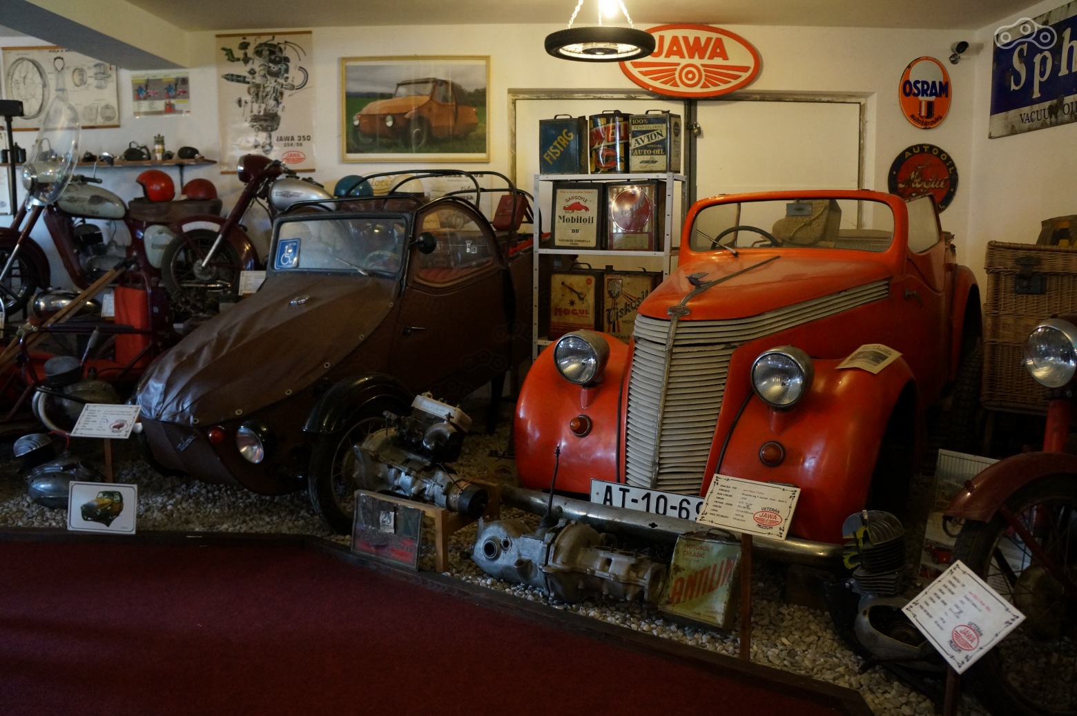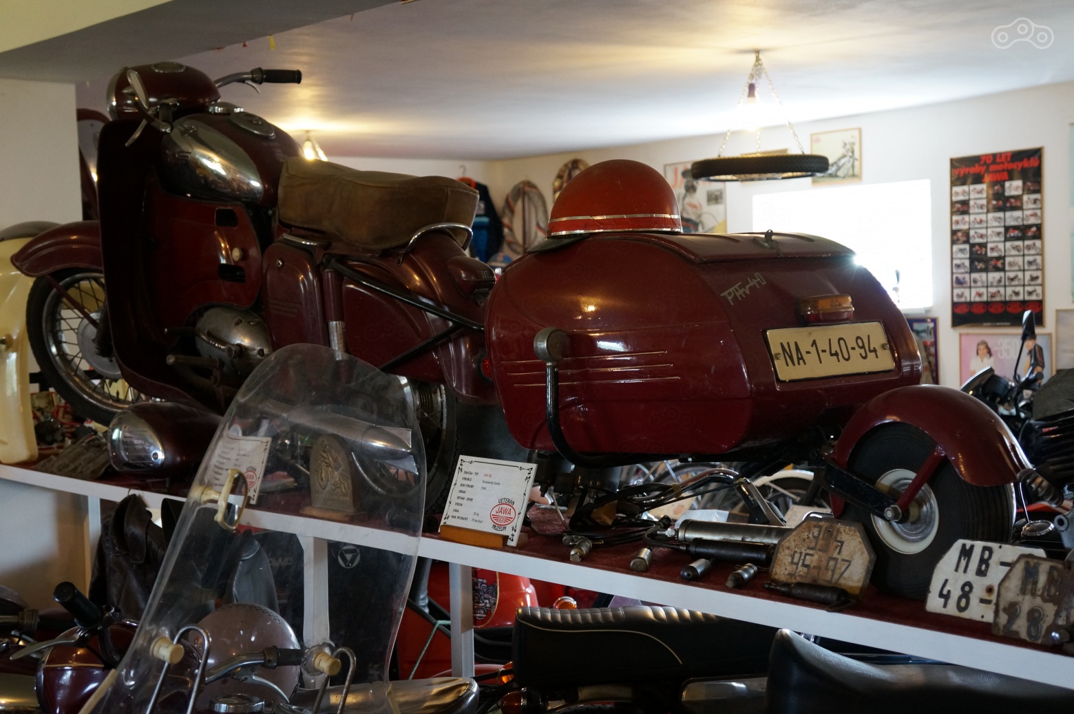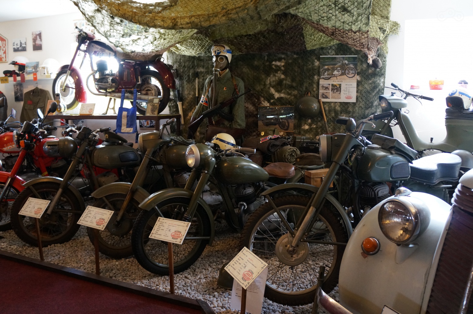 Сам музей довольно тесный, но в нем есть все, от довоенных моделей до последних, уже китайских поделок завода. Есть и всякие мелкосерийные штуковины, вроде снегохода Jawa, а так же целый сарай с разными самоделками - их хозяин музея тоже собирает. Увы, большой репортаж с рассказом об истории бренда и развитии моделей я не осилю, зато, наконец, выложу фотографии.