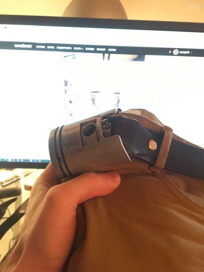 Это тот самый поршень от 175 кубовой двойки, его мы с приятелем распилили на две половины и сделали пряжки для ремней, как у настоящих байкеров. Кстати, чёрное на поршне - не нагар, а та самая смазка мс-2000 от вмп авто о которой я говорю в видео. 175 кубовый ехал ровно 110 и никак не больше, но и этого хватало чтобы объезжать совы 175, которые чуть тяжелее восхонды. И без смазки на поршне, понятное дело.