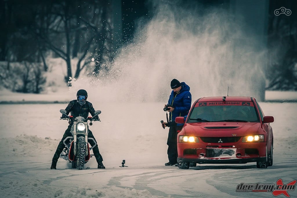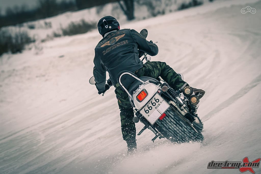 Ну и поскольку я всегда за любой кипиш, включая голодовку, если это пойдет на пользу делу, то когда он написал мне несколько недель назад, что хочет воткнуть себе на Харли шипованные покрышки и погонять по льду Москва-реки, разумеется, не отказался весь процесс поснимать.
