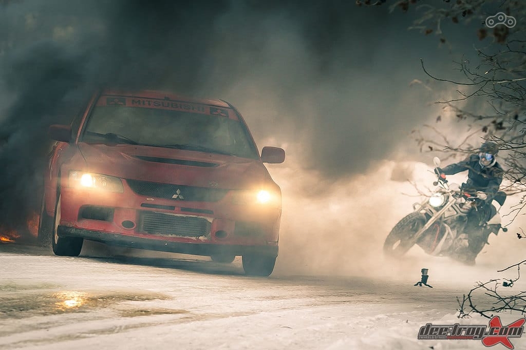Потом Лансер и Харли вместе, но не очень эффектно, ибо не попали колесами по соляре.