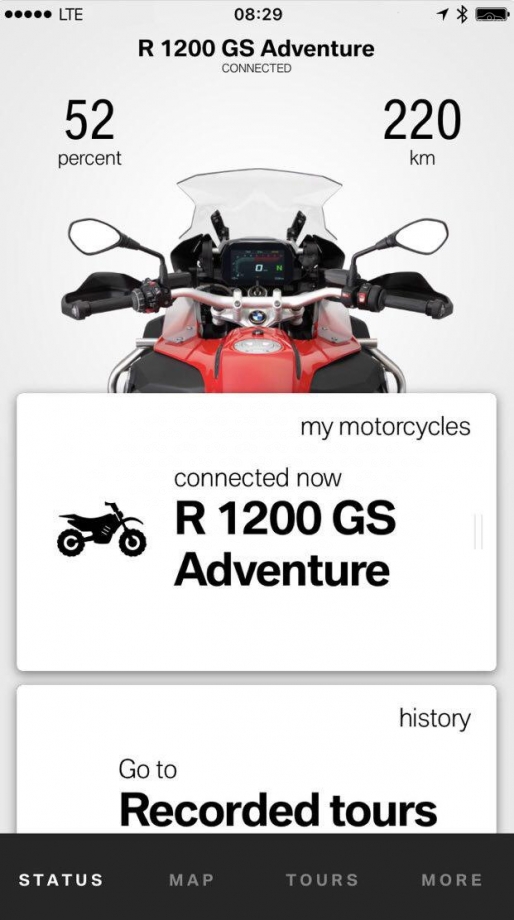 Для BMW есть такое же, но они немного топорное. Из функций там только функция с мажорными названием "Мои мотоциклы", есть ещё зарегистрированные поездки, данные с мотоцикла (пробег, расход и тому подобное). СТО и заправки. А еще туда засунули навигатор с бесплатными картами.