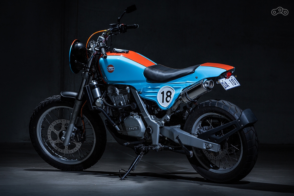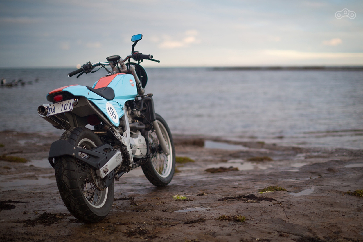 Лучше всего в концепцию вписался резервуар от Honda FT500 Ascot, однако подогнать его к раме F650 Funduro оказался не так-то просто. Андрей обратился за помощью к местному жестянщику Максу Хейсу, который в дополнение к основной задаче, изготовил хвост и боковые обтекатели мотоцикла. Всё остальное, как говорится, было делом техники.