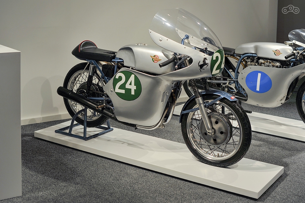 В центре экспозиции – три гоночных мотоцикла, построенных в промежуток между 1958 и 1960 годами Фабио Тальони, послуживших отличным стартом спортивной карьеры одного из самых титулованных гонщиков – Майка Хейлвуда.