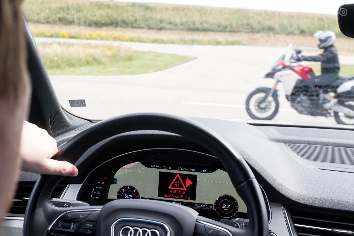 В демонстрации возможностей системы, работающей под управлением набора микросхем Qualcomm 9150 C-V2X, приняли участие два автомобиля Audi Q7 и Audi A4, а также турэндуро Ducati Multistrada 1200 Enduro. Все участники теста были «связаны» между собой и предупреждали водителя об опасном сближении индикацией на приборной панели. В Ducati обещают внедрить новые системы активной безопасности к 2020 году.