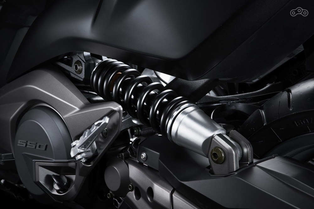 Двигатель новинки ‒ двухцилиндровый инжекторный «рядник», объёмом 550 см3, выдающий 53 л.с. мощности и 55 Нм максимального крутящего момента. Эти значения превосходят показатели главного конкурента AK 550 ‒ Yamaha Tmax, долгое время носившего звание «самого быстрого» в классе максискутеров.
