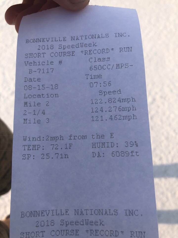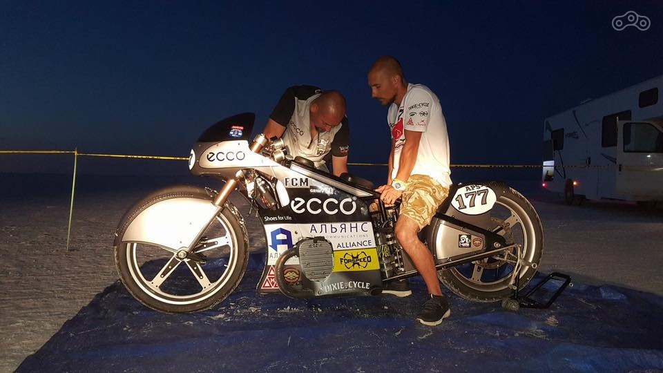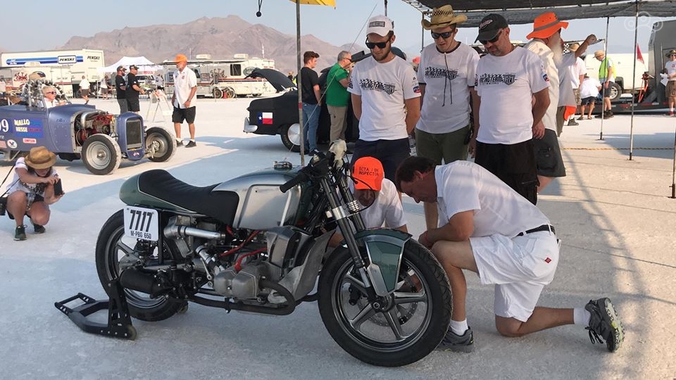Неделя скорости в Бонневилле – суровое испытание для гонщиков. С 2000-го года рекорд в нашем классе составляет 115,7 миль в час, и мы 3 раза побили эту скорость: 119, 122, 120 миль в час. Но для официального установления рекорда, необходимо его подтвердить следующим заездом. У нас возникали поломки, в связи с которыми повторить скорость не получалось, поэтому приходилось снова показывать рекордный результат и его подтверждать.