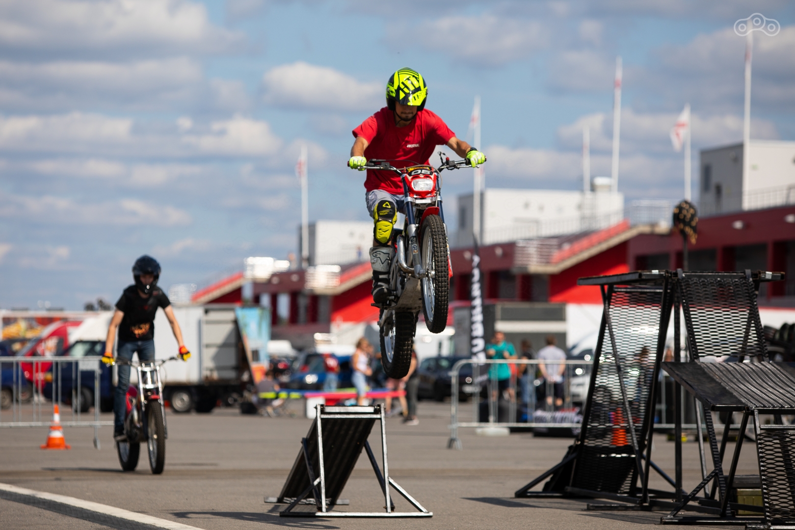 Не только на трассе царила жара, паддок автодрома также был наполнен яркими развлечениями: от мототриала с трюками и прыжками через горящее кольцо до громких страйкбольных тиров и метания ножей. Прошли соревнования по мотоджимхане, а также были определены юные чемпионы в соревнованиях по беговелу.
