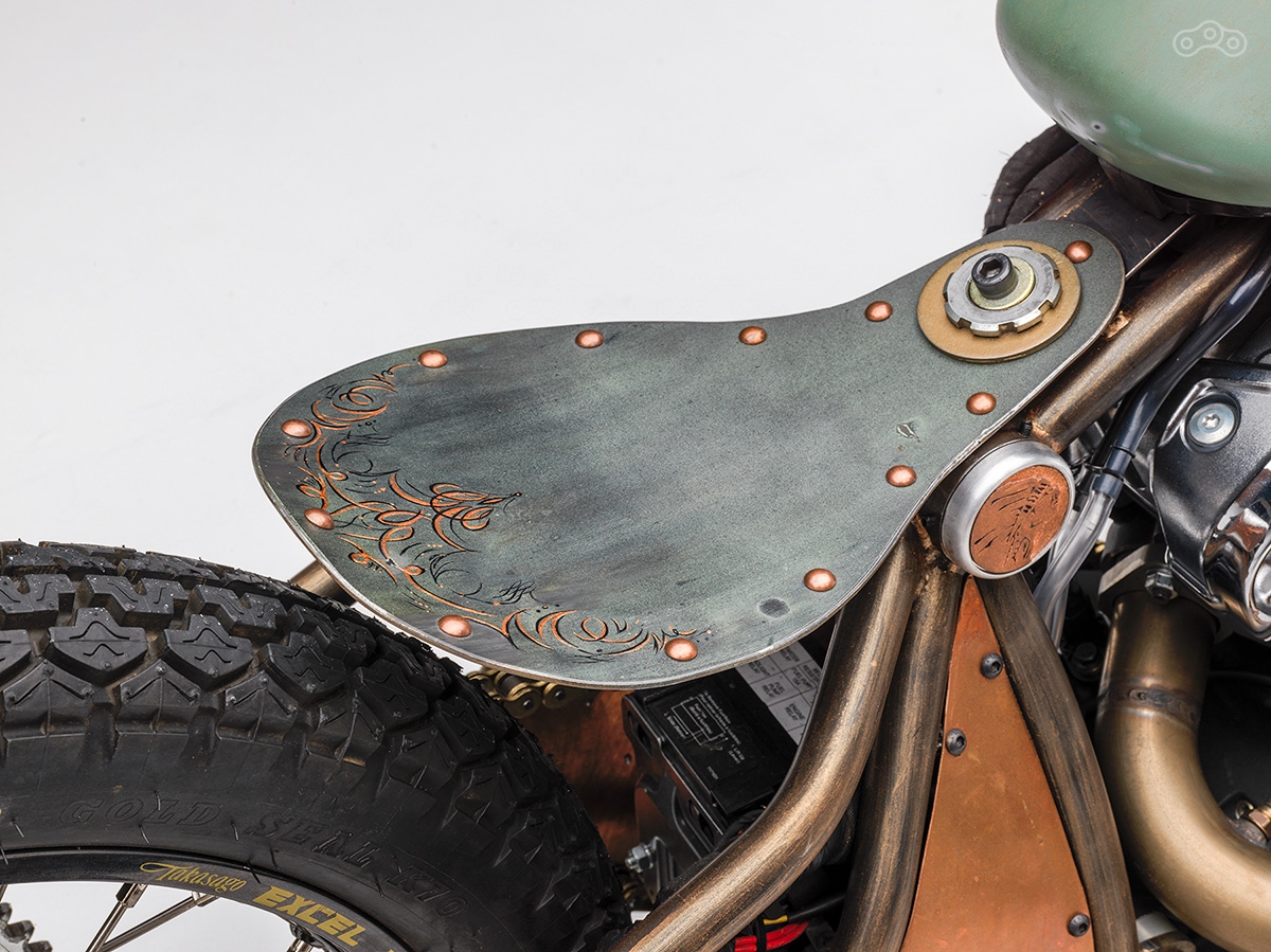 Рычажная вилка, оригинальное сидение, выхлоп и колёса - всё это Фред изготовил собственноручно