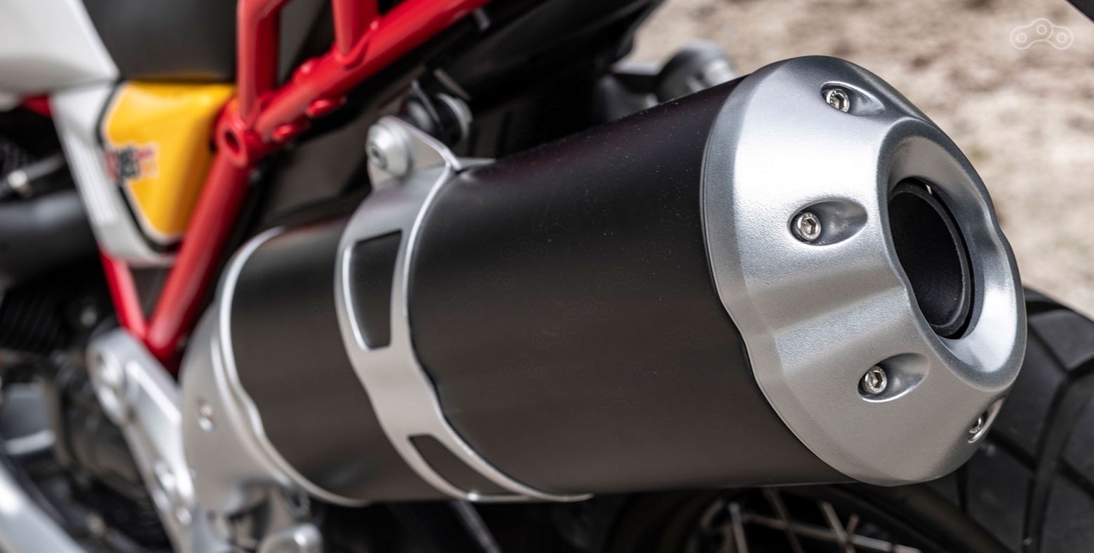 В угоду экологическим нормам Moto Guzzi V85 TT оснастили довольно громоздким глушителем