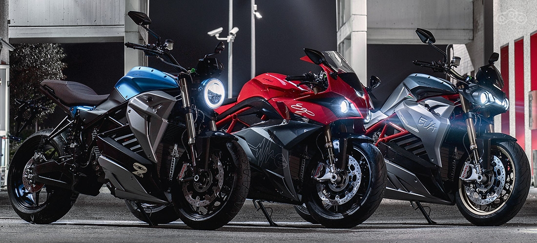 Модельный ряд компании Energica. Слева направо модели: Esseesse9, Ego, Eva