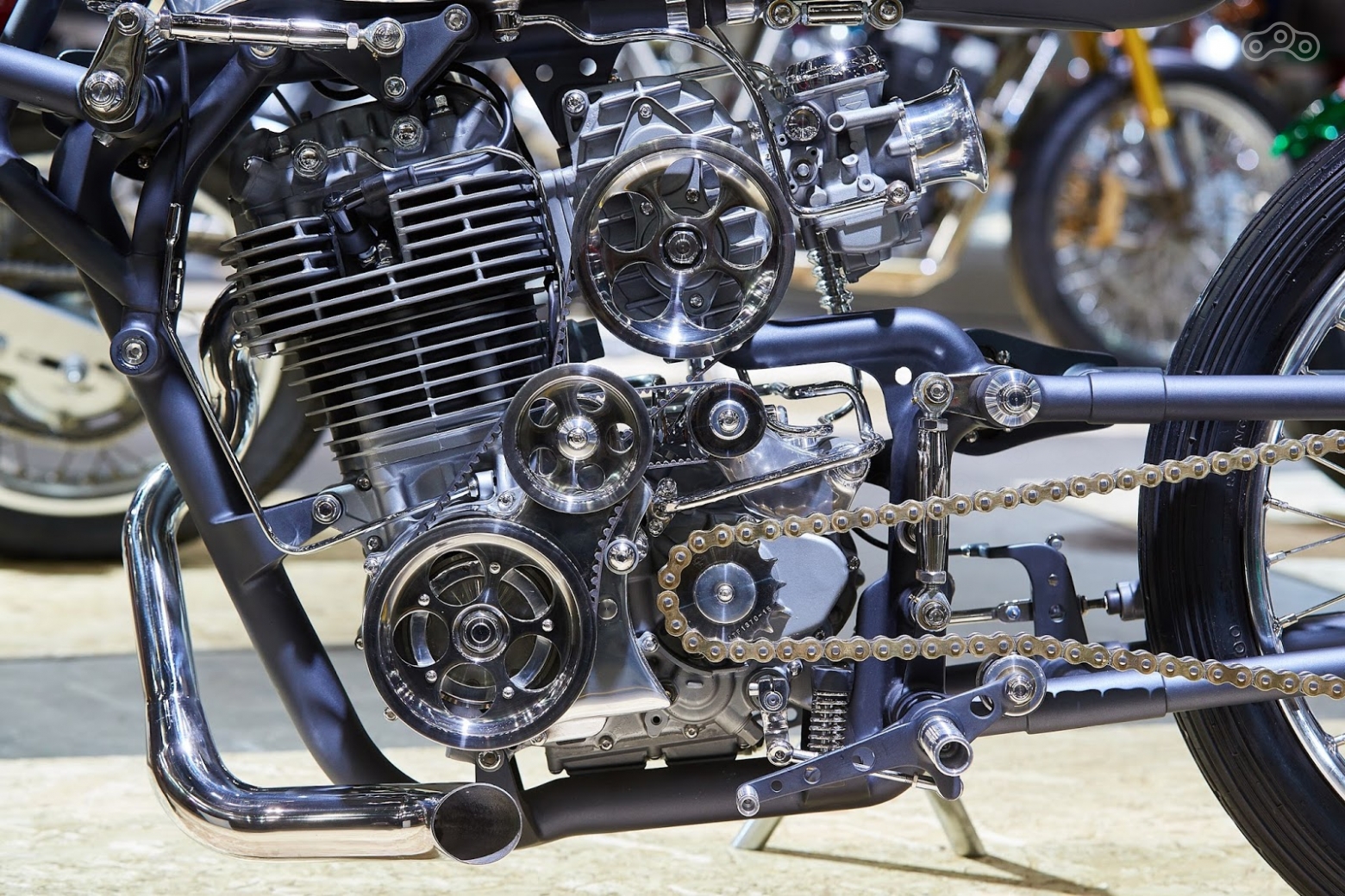 Судейскую коллегию ошеломило устройство скрытой от глаз торсионной подвески и рулевого управления этого мотоцикла, а органично вписанный в силовую структуру компрессор, увеличивающий отдачу мотора, поставил финальную точку в принятии верного решения.