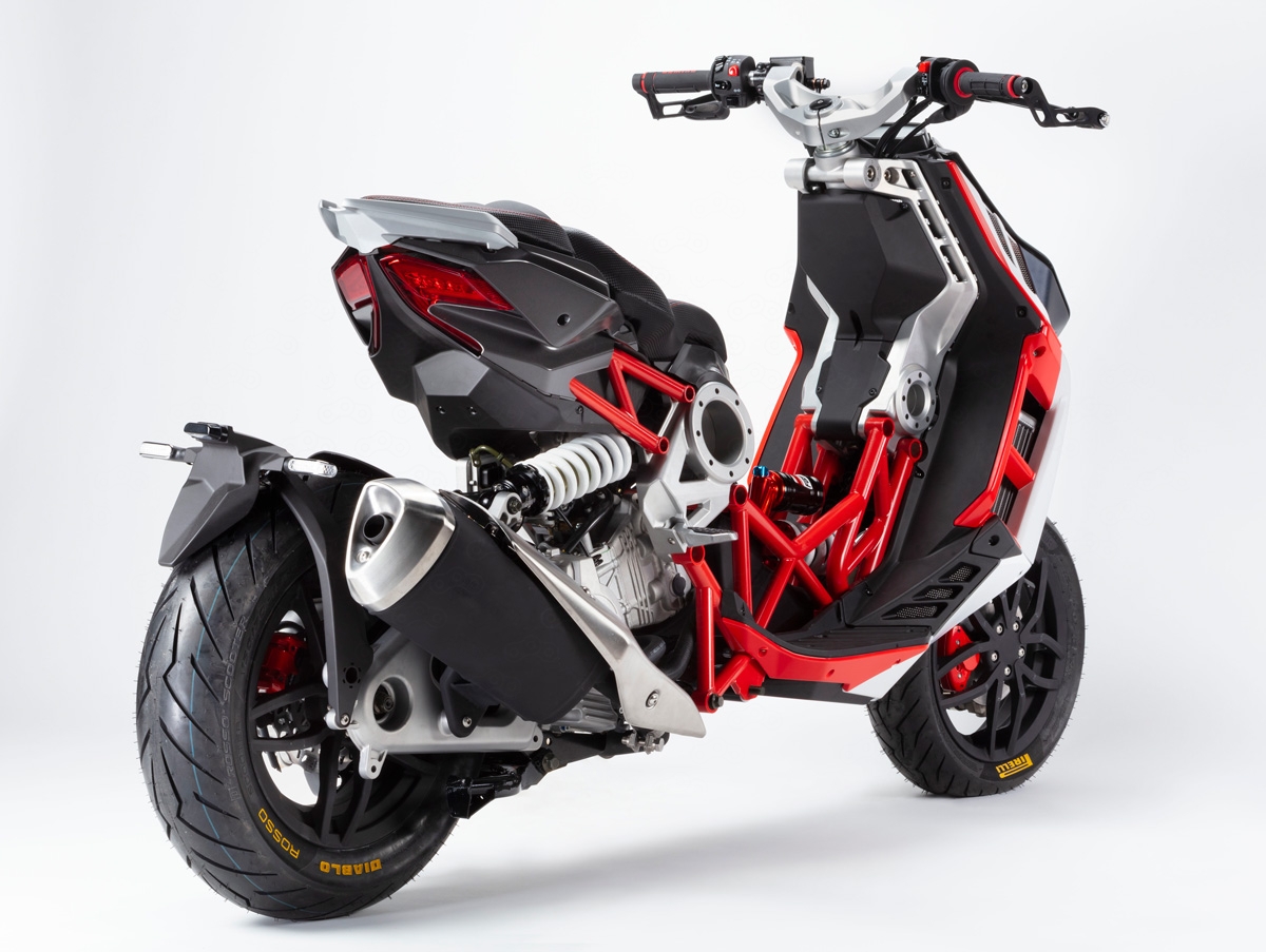 В передней части скутера использована рычажная подвеска, запатентованная основателем бренда, Леопольдо Тартарини. Скутер может быть укомплектован двумя силовыми установками на 125 см3 и 200 см3 (14,9 л.с при 10 000 об/мин и 19,8 л.с. при 8 250 об/мин соответственно), причём более мощная модификация обойдётся клиенту дороже всего на 300 евро, однако, по действующему в Европе законодательству, до её управления может быть допущено лицо с мотоциклетными правами категории A2.