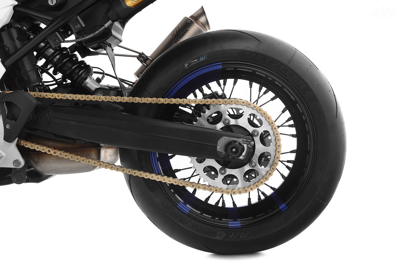 К сожалению, мы не знаем ответа на этот вопрос, потому как с технической стороны мотоцикл остался практически неотличим от заводской версии. Тем не менее, стоит упомянуть, что на байке стоят первоклассные колёса с резиной Metzeler Racetec RR, иное сидение, новые подножки, защита картера и боковых крышек, а также эффектная выхлопная система 2-в-1, повышающая мощность и уровень децибел мотора.