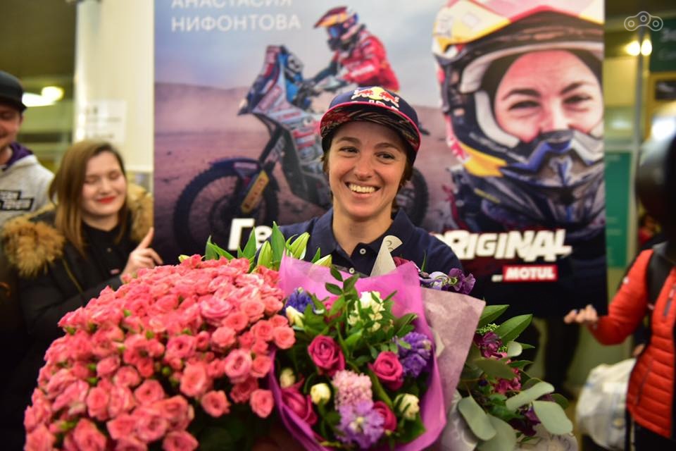 В мотоциклетном классе отличилась Анастасия Нифонтова, которая стала первой в мире женщиной, успешно преодолевшей все этапы ралли-марафона в категории Original by Motul, где участники выступают без технической поддержки. В своей категории она заняла девятое место. В генеральной классификации россиянка стала 60-й, отстав от победителя австралийца Тоби Прайса на KTM на 28 часов 49 минут 18 секунд.