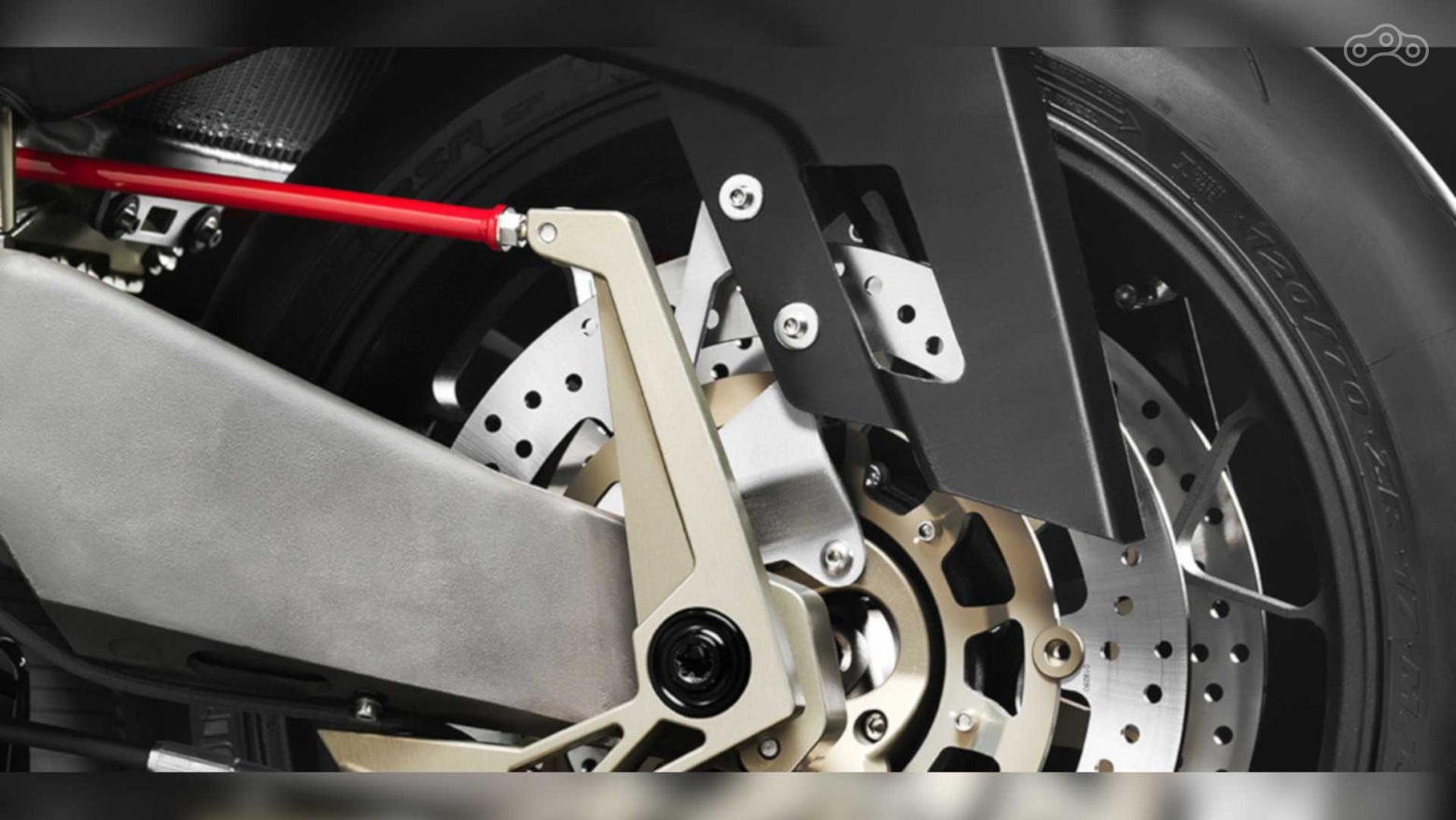 Мотоцикл (или межзвёздный корабль?) получил два маятника, спереди и сзади. Такая компоновка позволяет избежать клевка передней части мотоцикла во время торможения и улучшить рулёжку в поворотах. Оба мятника прикреплены к магниево-карбоновой композитной раме формы «двойная омега», усилие для поворота переднего колеса передаётся гидравлическим приводом при помощи системы тяг и рычагов. Идентичная конструкция была впервые применена в 2004 году для супербайка Bimota Tesi 2D.