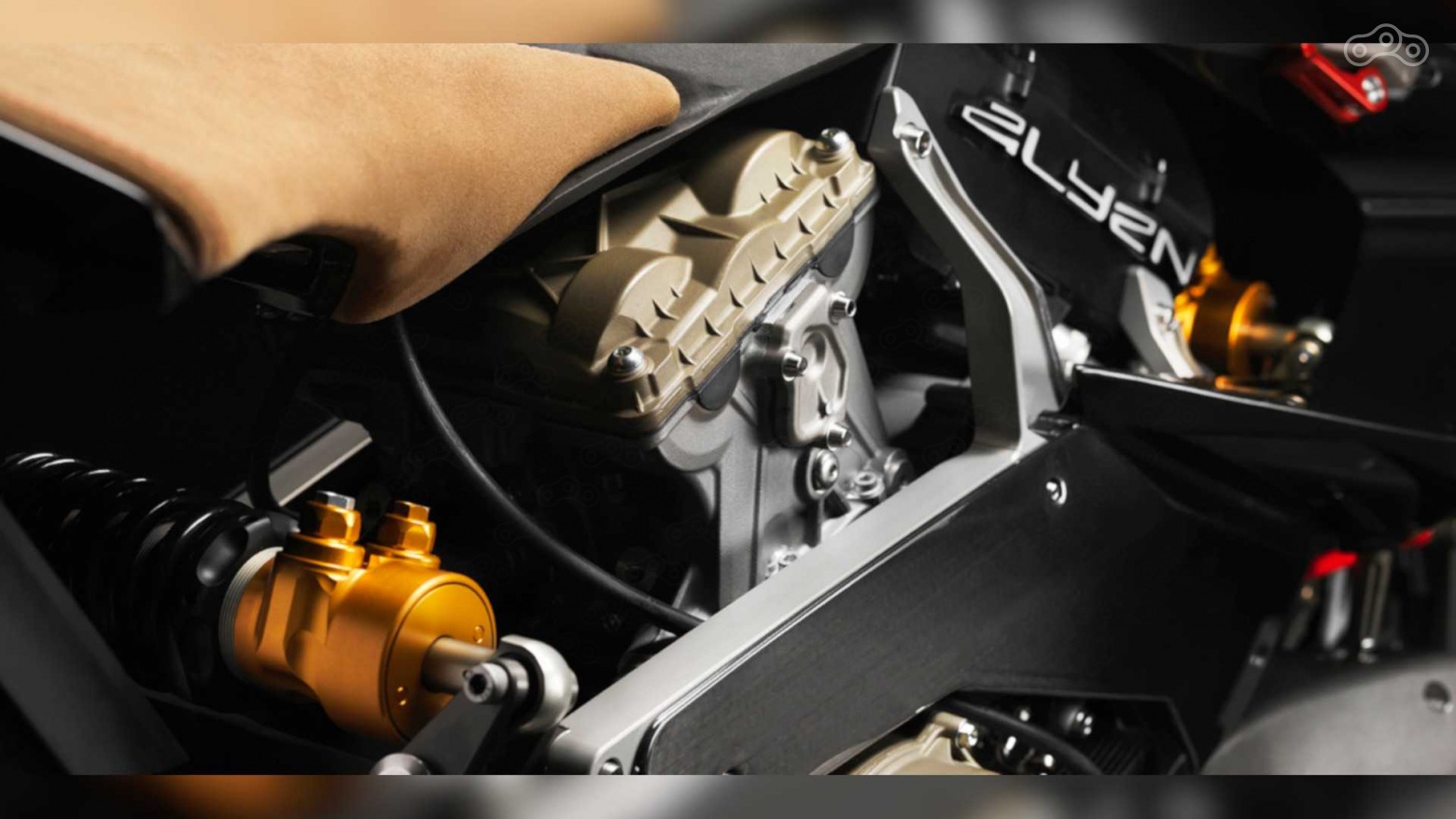 Alyen 988 может похвастаться обилием карбона, помимо рамы из этого материала изготовлена облицовка, колёсные диски Rotobox Bullet, защита рычагов руля со встроенными сигналами поворота и даже глушители (такие же «инопланетные» «банки» установлены на Vyrus 982 M2).