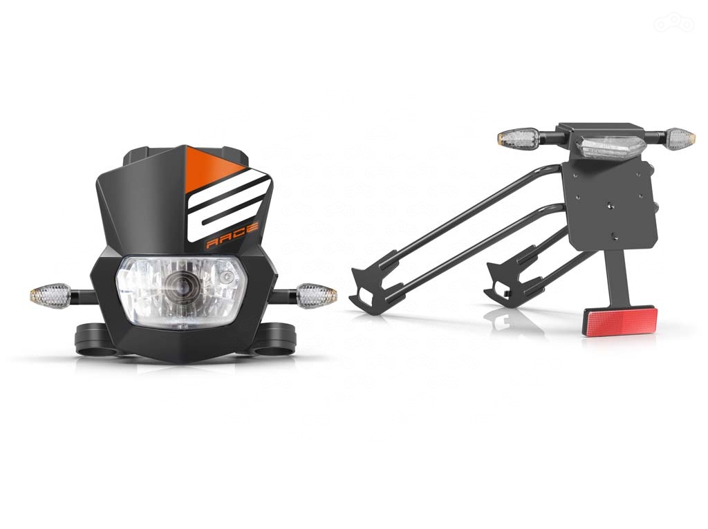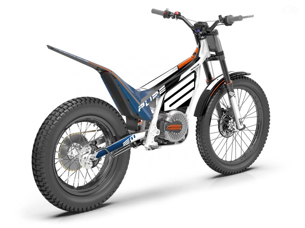 Что касается остальной геометрии, то электротриал совсем не отличается от бензинового аналога. Длина колёсной базы составляет 1320 миллиметров, хода передней и задней подвески - 175 и 170 миллиметров, соответственно, высота по седлу — 670 мм, клиренс - 320 миллиметров, высота подножек - 360. На переднем колесе установлен 182-миллиметровый тормозной диск и 4-поршневая скоба, на заднем — 150-миллиметровый и 2-поршневая. Мотоциклы обуты в покрышки Michelin X11. Производитель также предлагает светодиодный набор из фары, стоп-сигнала и поворотников, установка которого позволит добираться до места тренировок по дорогам общего пользования. Мотоциклы эквивалентны 125-кубовым бензиновым аналогам, что позволит ездить на них водителям с категорией А1.
