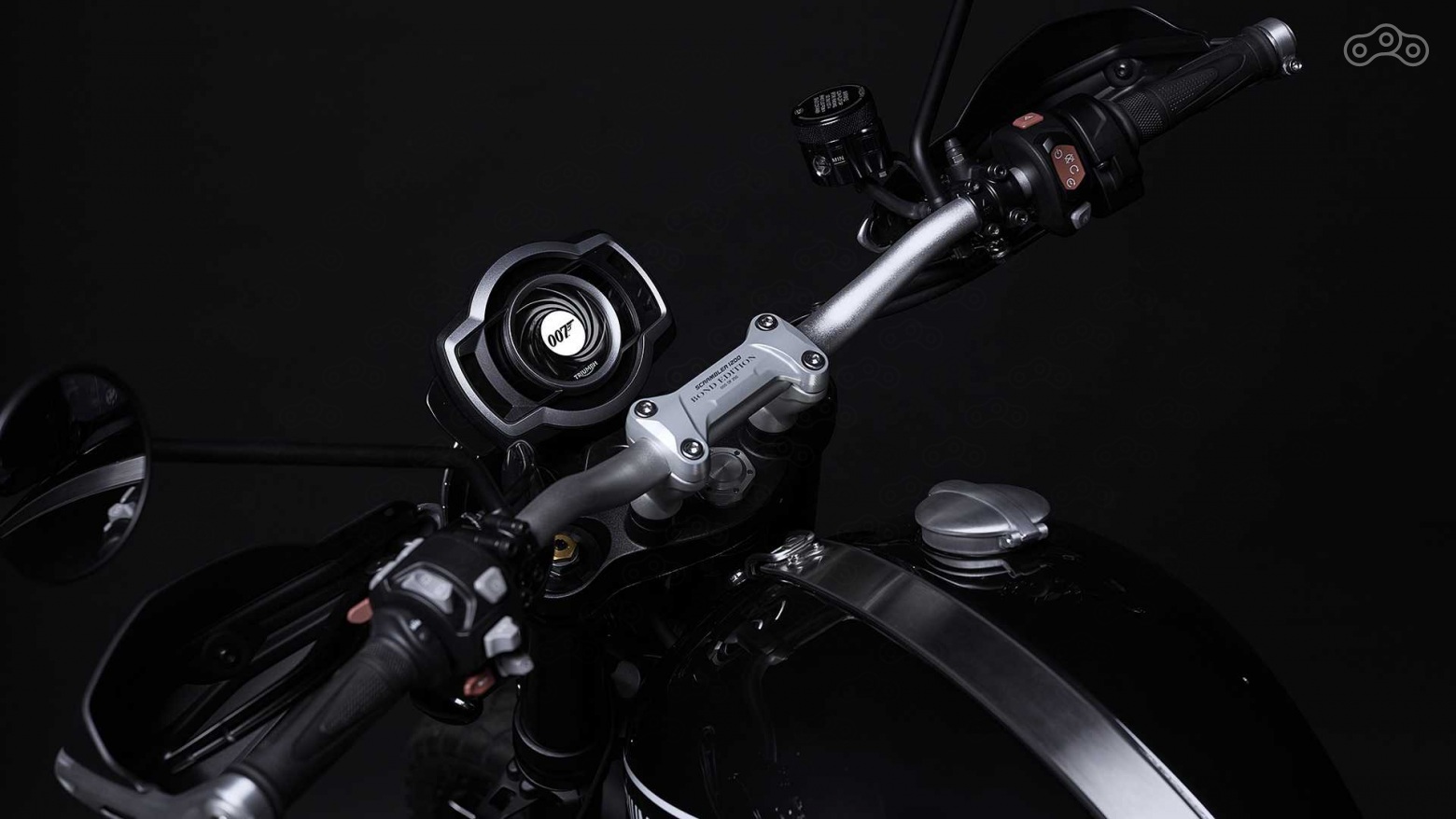 Новый мотоцикл Джеймса Бонда является топовым Scrambler XE с некоторыми отличиями. Лимитированный скрэмблер отличается чёрной облицовкой (или смокингом?), номерами 007 на защитном экране глушителей и на боковом пластике, кожаным седлом с вышивкой “Bond Edition”, TFT-дисплеем со специальным 007-приветствием, защитой рычагов, задней ручкой для пасажира, защитой картера, дополнительными противотуманными фарами, чёрными маятником, натяжителями цепи и кожухом передней звезды, глушителями Arrow с карбоновым концами и нержавеющей решёткой на фаре.