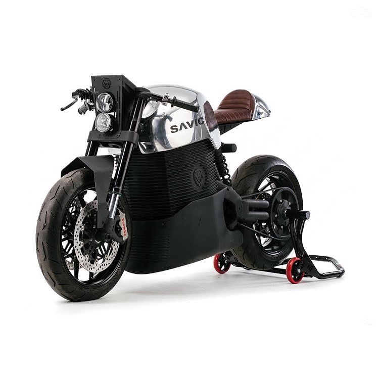 90-вольтового блока аккумуляторов Savic C-series Omega с ёмкостью 7 кВт-ч хватает на 120 километров, восстановить заряд с 20 до 80 процентов можно за два часа. Мощность электродвигателя — 33,5 л. с., крутящий момент — 110 Н-м, вес мотоцикла — 170 килограммов.