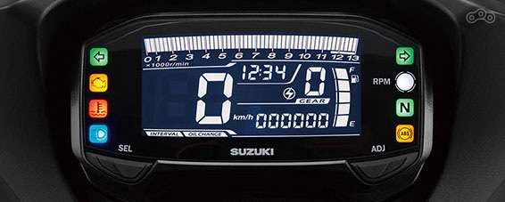 Приборная панель новинки состоит из монохромного жидкокристаллического экрана и 8 контрольных ламп, одна из которых является программируемым на заданные обороты блинкером. ЖК-панель в этом году изменила свой цвет для лучшей читаемости (белые символы на тёмном фоне), помимо традиционных для любого мотоцикла величин она также показывает номер включённой передачи, текущий расход топлива и пробег до очередной замены масла.