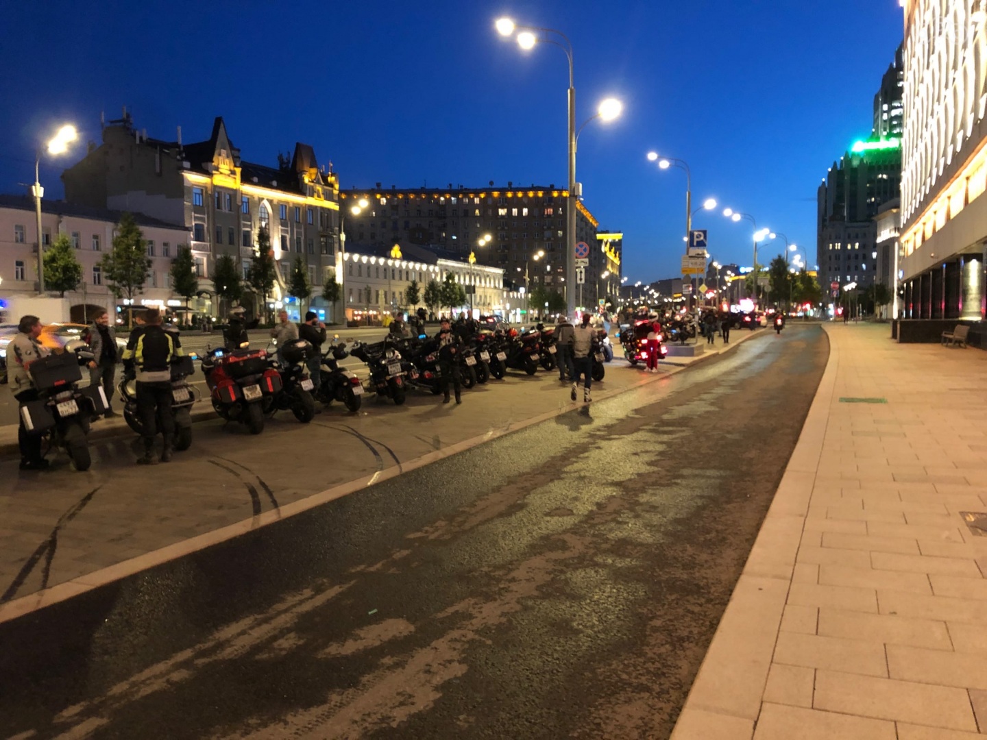 Большая часть группы проследовала по МКАД, Каширскому шоссе, Варшавскому шоссе, Мытной улице и далее в центр. Маршрут совпадал лишь частично: некоторые мотоциклисты покидали поток транспорта и сворачивали по своим делам, некоторые - присоединялись позже. Совпала и точка первой остановки - ул. Садовая-Самотёчная, 1. Перед этим зданием на Садовом кольце расположен крайне удобный городской паркинг, парковка на котором для 2-колёсных транспортных средств бесплатна.