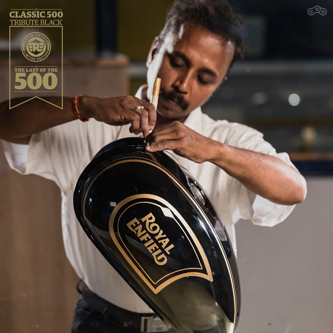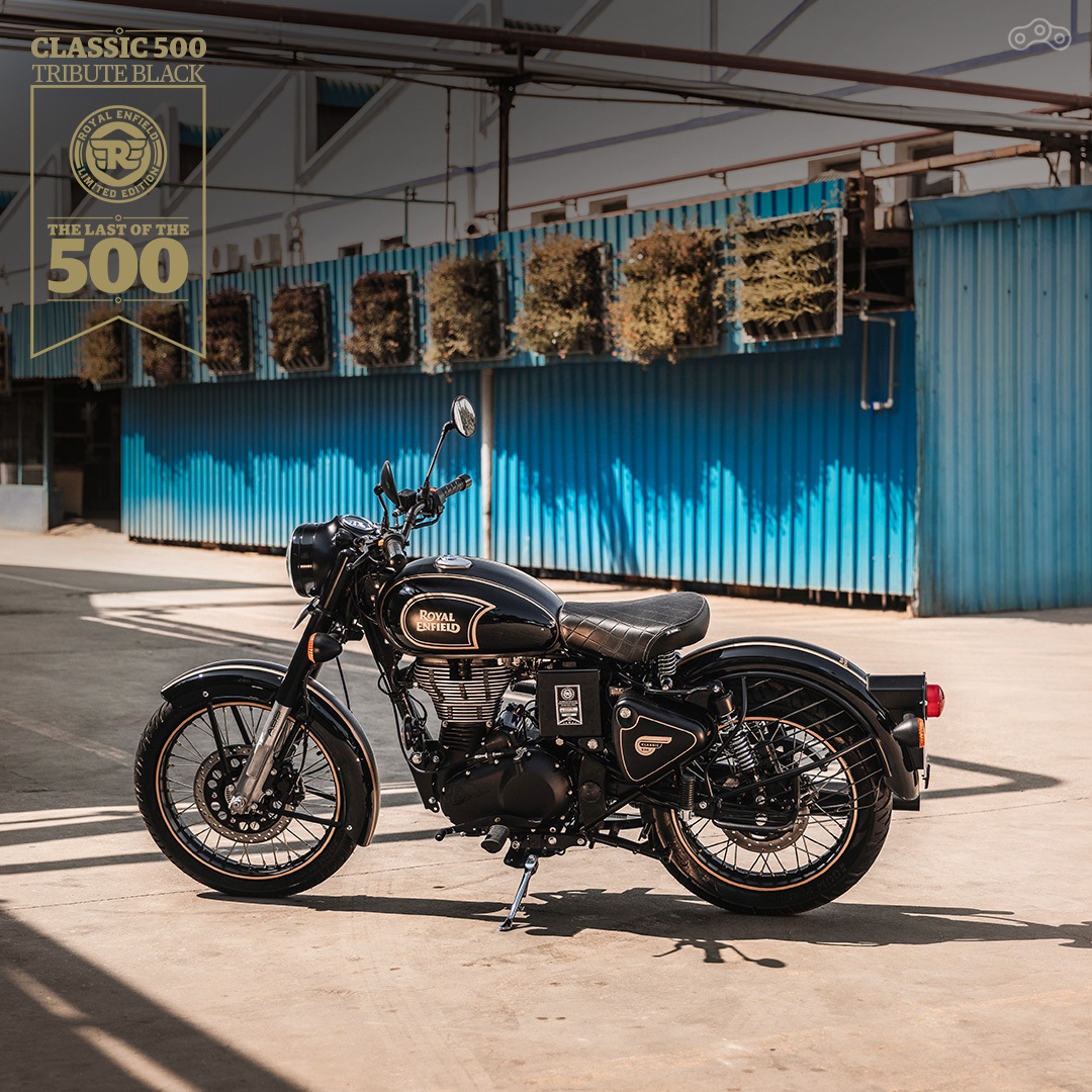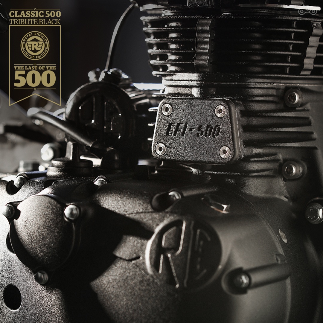 Tribute Black — версия Royal Enfield Classic 500, которая выпускается с 2008-го. 499-кубовая впрысковая «воздушая» силовая установка выдаёт скромные 27 лошадиных сил, на мотоцикле до сих пор используются старомодные парные задние амортизаторы.