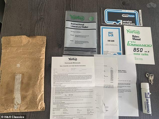 Мотоцикл находится в том же состоянии, что и 43 года назад, выпускная система, спидометр и одометр всё ещё покрыты защитными наклейками. В комплекте идут документы и заводская инструкция по эксплуатации, всё находится в превосходном состоянии.
