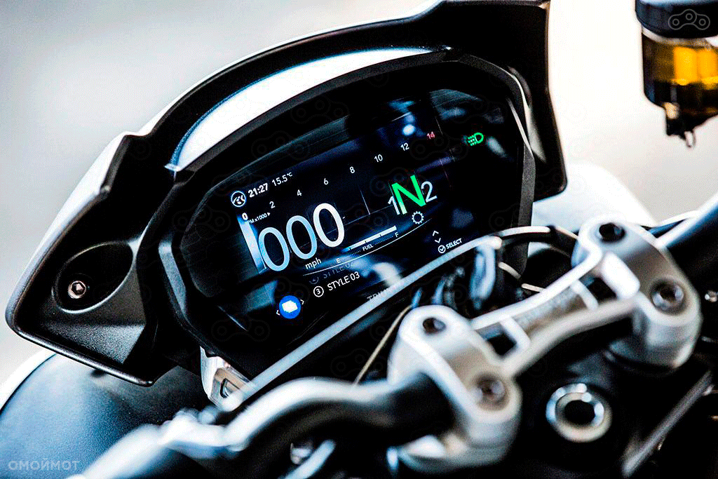Новые байки семейства Street Triple могут похвастаться современной начинкой: дроссельная заслонка управляется с помощью электроники, двигатель имеет до пяти режимов работы в зависимости от комплектации, квикшифтер (в версии RS) и многоуровневый отключаемый трекшн-контроль.