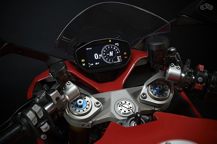 6-осевой инерциальный акселерометр следит за углами наклона 184-килограммового мотоцикла, делясь данными с угловой АБС, трекшн- и вилли-контролем. У нового суперспортбайка 4,3-дюймовый полноцветный дисплей.
