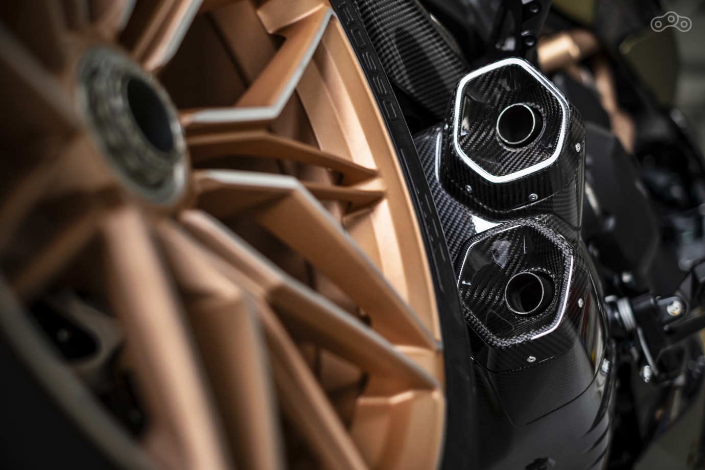 Как и у любого роскошного итальянского мотоцикла, у новинки в достатке карбоновых деталей: из этого материала изготовлены воздухозаборники, боковые панели, спойлер, облицовка бензобака и «хвоста».