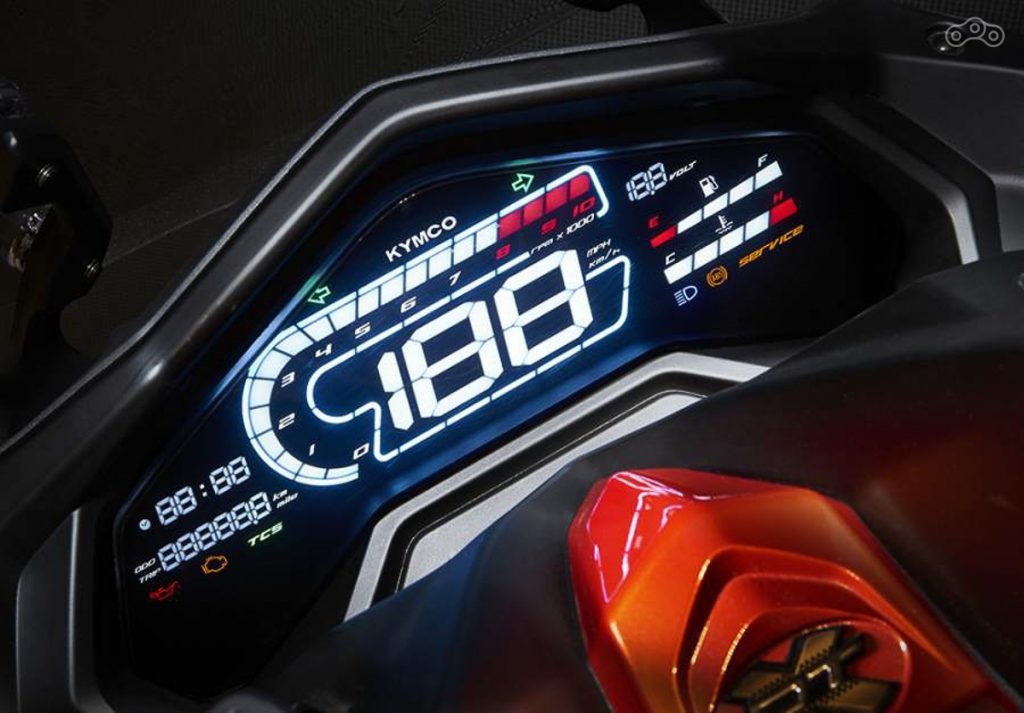 У KRV много общего со спортбайком: дисковые тормоза спереди и сзади, маятник, отделённый от двигателя для снижения неподрессоренной массы — как на флагмане Kymco AK550. Плюс ко всему такая компоновка позволила освободить дополнительное пространство под седлом, достаточное для одного закрытого шлема. Ещё у KRV есть АБС, трекшн-контроль, LED-оптика и бесконтактный замок зажигания.
