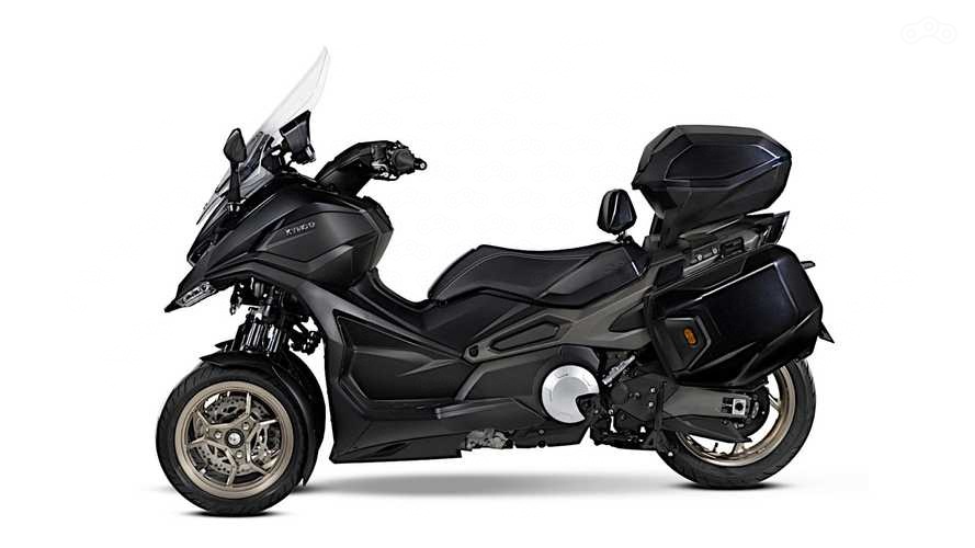 CV3 был показан 27 ноября, у него 550-кубовая «водяная» параллельная «двойка». Снаряжённый вес трёхколёсного максискутера велик, 280 килограммов, однако не будем забывать, что он распределяется не на два, а на три колеса. Они имеют диаметр в 13 дюймов и установлены на перевёрнутую вилку, диаметр заднего колеса — 15 дюймов, на всех трёх — по одному тормозному диску.