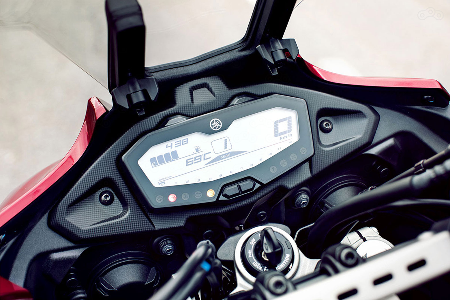 Приборная панель не изменилась по сравнению с MT-07, но обрамлённая пластиком, «приборка» выглядит органичнее.