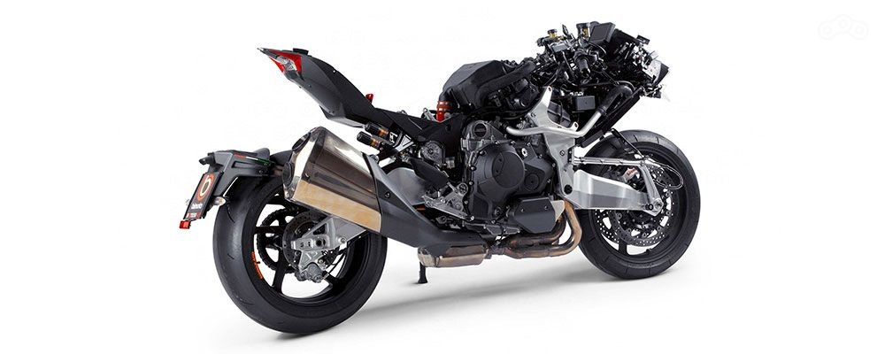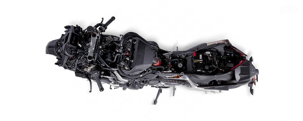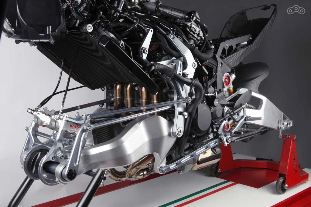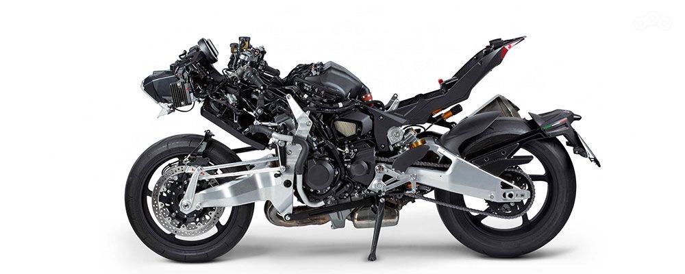 Tesi H2 сам по себе уникален. У него 998-кубовый 231-cильный компрессорный двигатель от Kawasaki Ninja H2 и оригинальная подвеска с передним маятником, тормозные скобы Brembo Stylema с 330-миллиметровым полуплавающими дисками, амортизаторы Ohlins TTX и, конечно же, квикшифтер.