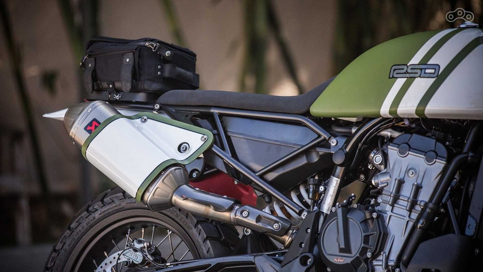 Угловатая футуристичная «родная» фара уступила место классической круглой, на неё была установлена декоративная защитная решётка. Спереди и сзади были установлены винтажные крылья КТМ, переднее — с металлическим усилителем.