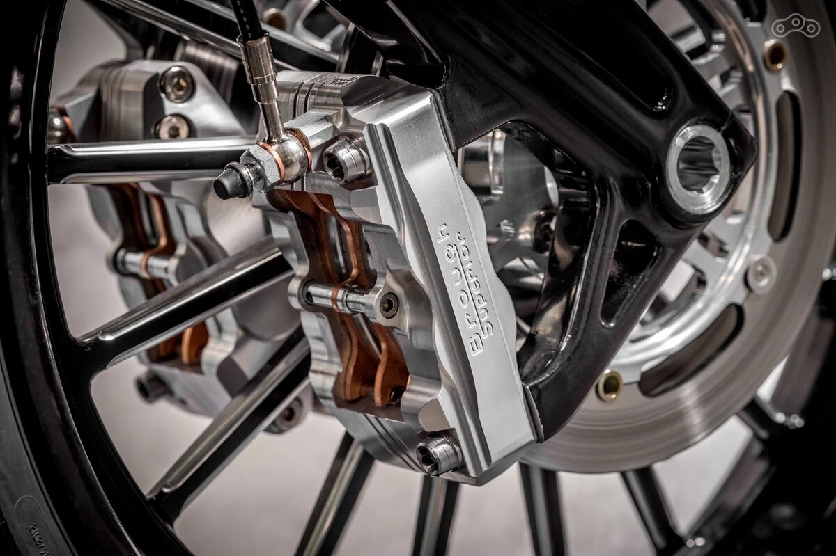 Тормоза Brough Superior Lawrence тоже не самые обычные: впереди вращаются четыре 230-миллиметровых диска, сзади — один. Их замедляют два четырёхпоршневых и один двухпоршневой суппорт, соответственно. Все компоненты компоненты тормозной системы — марки Beringer.