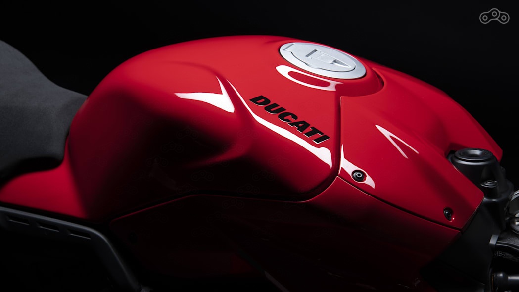 Изменилась форма бензобака для лучшего контакта мотоцикла и райдера во время торможения, а его рукам при поворотах станет удобнее. Задняя часть седла обоих Ducati стала более плоской, оно обтянуто новым материалом.