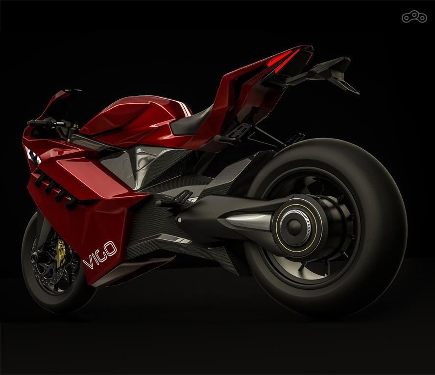 Внешний облик электробайка Vigo напоминает новые спортбайки Honda и Kawasaki
