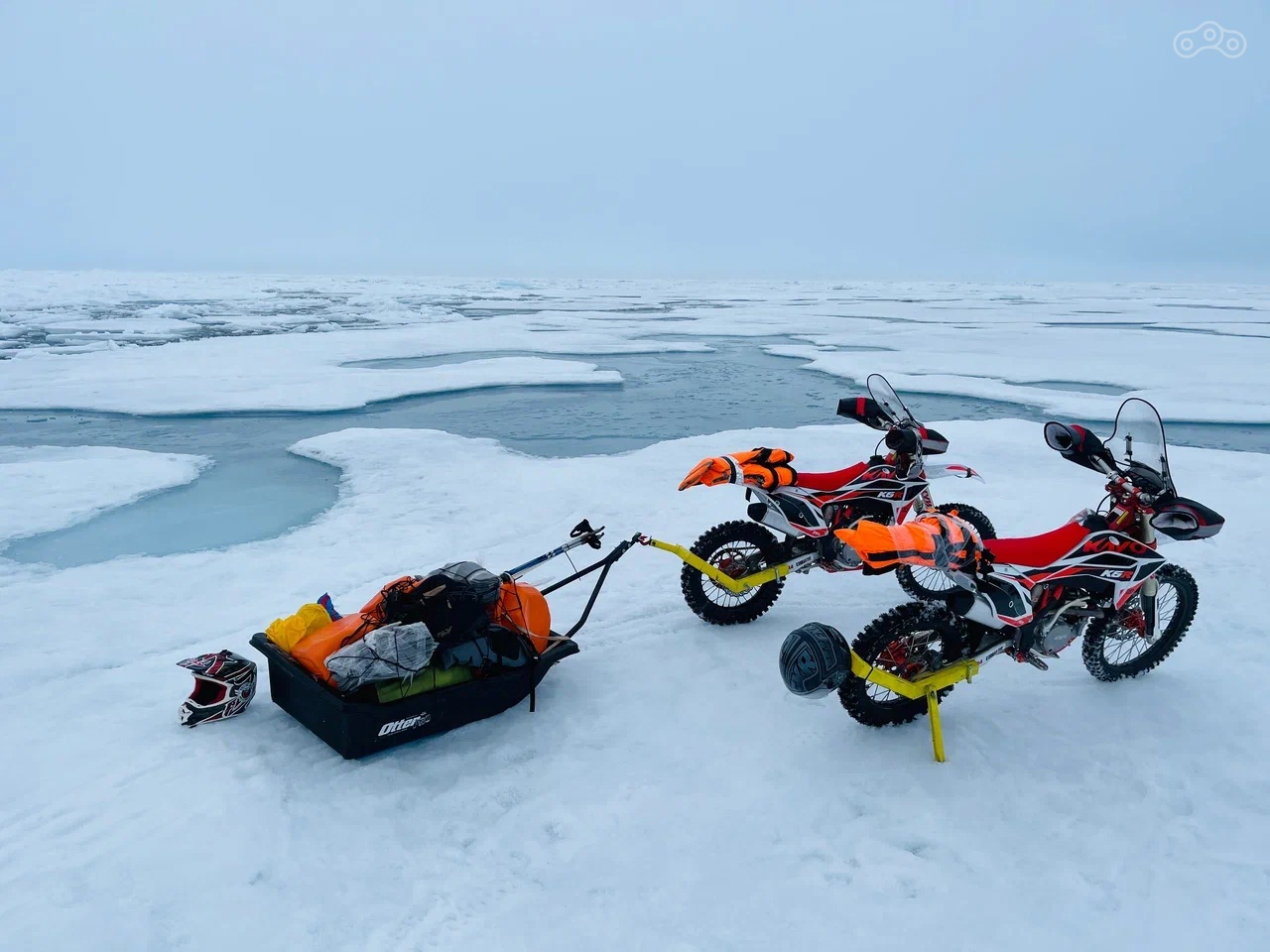 В августе 2023 года авантюристы-путешественники решили на мотоциклах покорить Северный Полюс. Честно сказать, время они выбрали не очень. Так как в эти края рекомендуют ехать в январе, феврале или марте. Летом и осенью лед тает, превращается в рыхлый снег из-за чего появляются трещины и торосы. В таких условиях езда на мотоцикле — это суперэкстремальная затея. Но, отпуск дали, видимо, в августе 😊