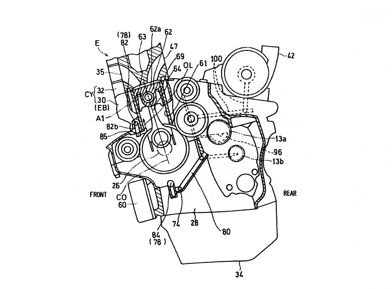 Патентный чертеж силовой установки трицикла Honda Neowing. Фото – Morebikes