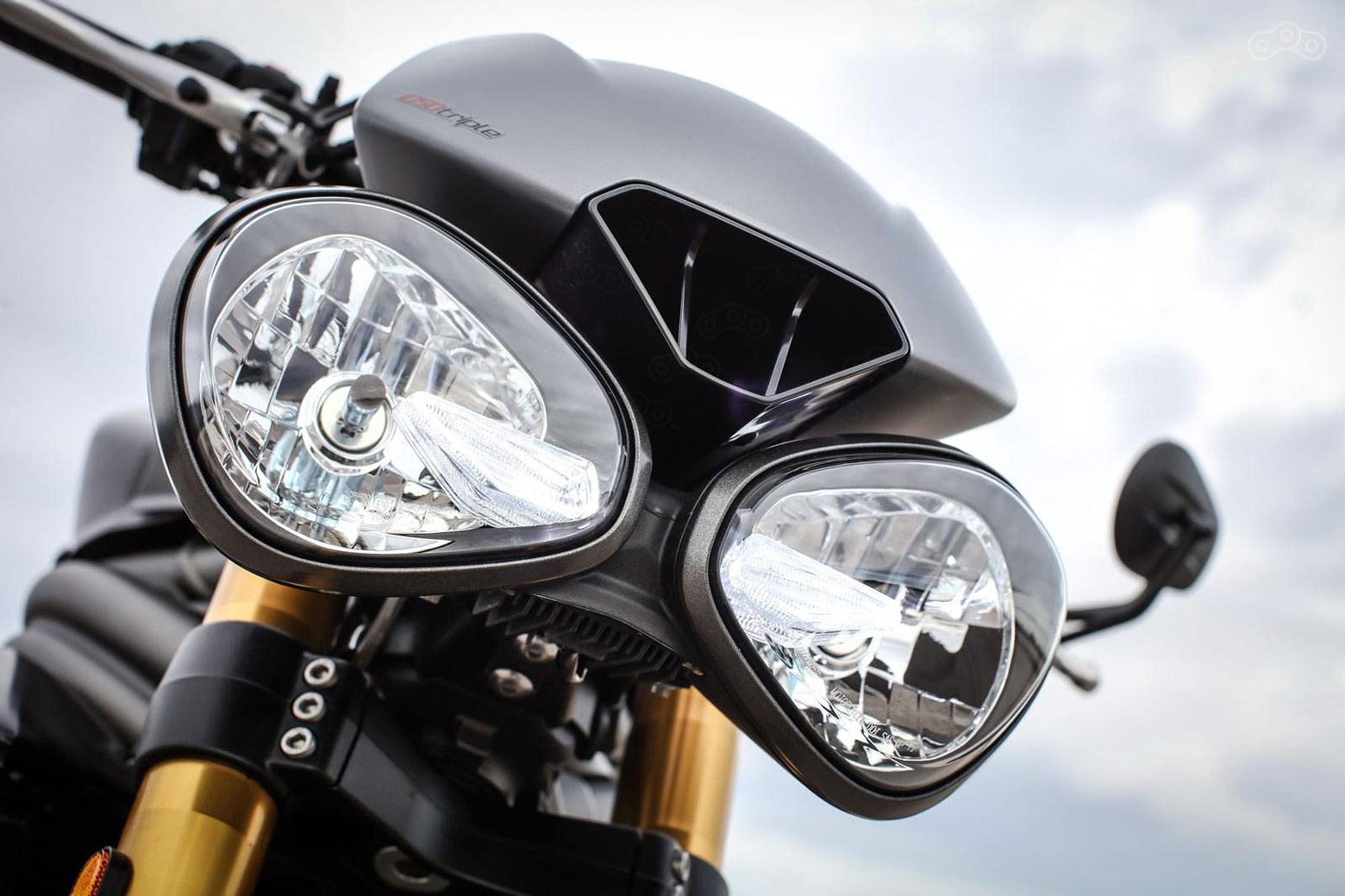 Форма новых светодиодных фар стала более округлой, повторяющей силуэт оптики на старшей модели Speed Triple. Оттуда же позаимствовали алюминиевые защитные накладки на радиатор.