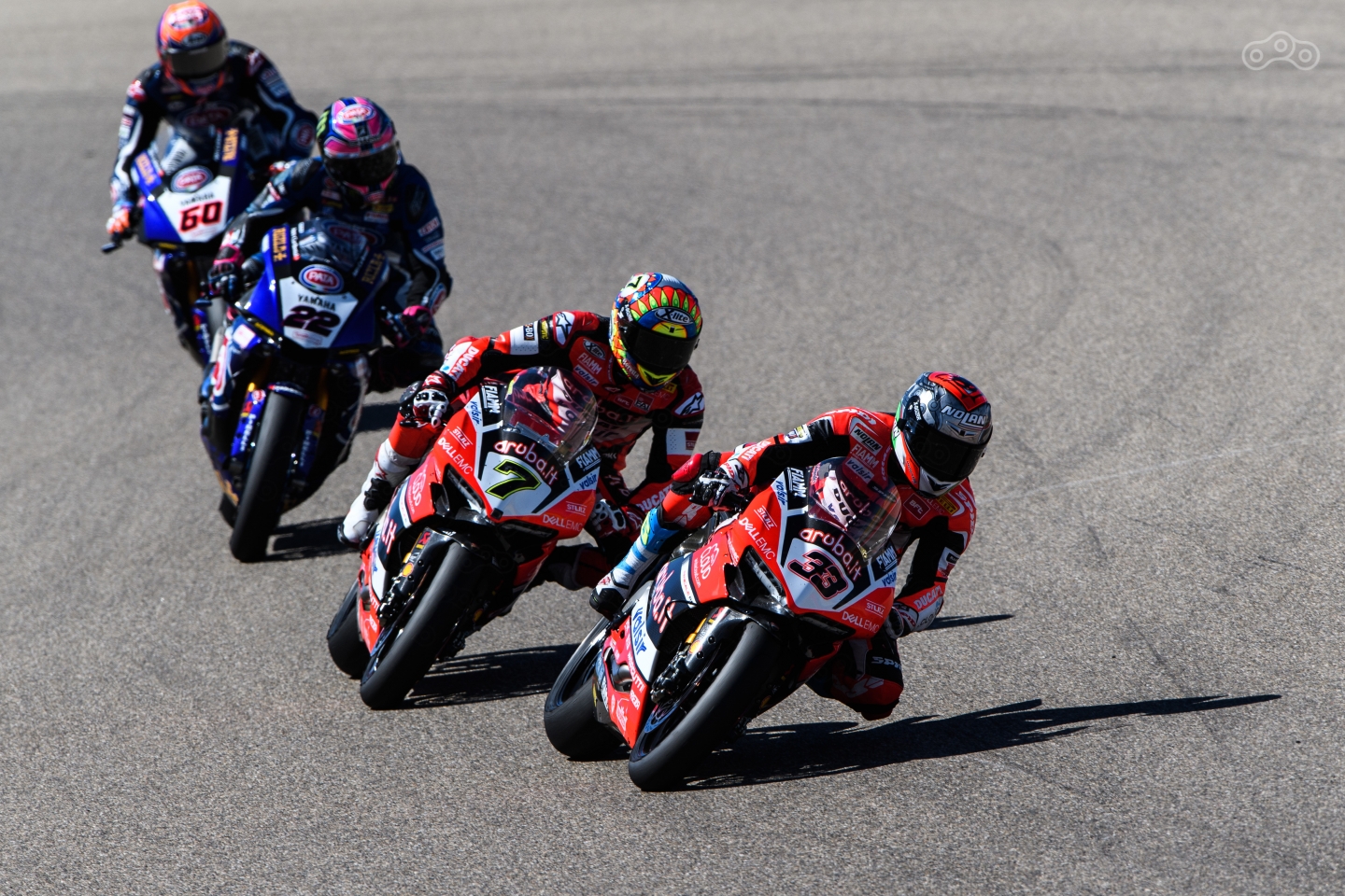 Чаз Дэвис, Том Сайкс и Марко Меландри во время третьего этапа гонок WSBK. Фото – Ducati Corse