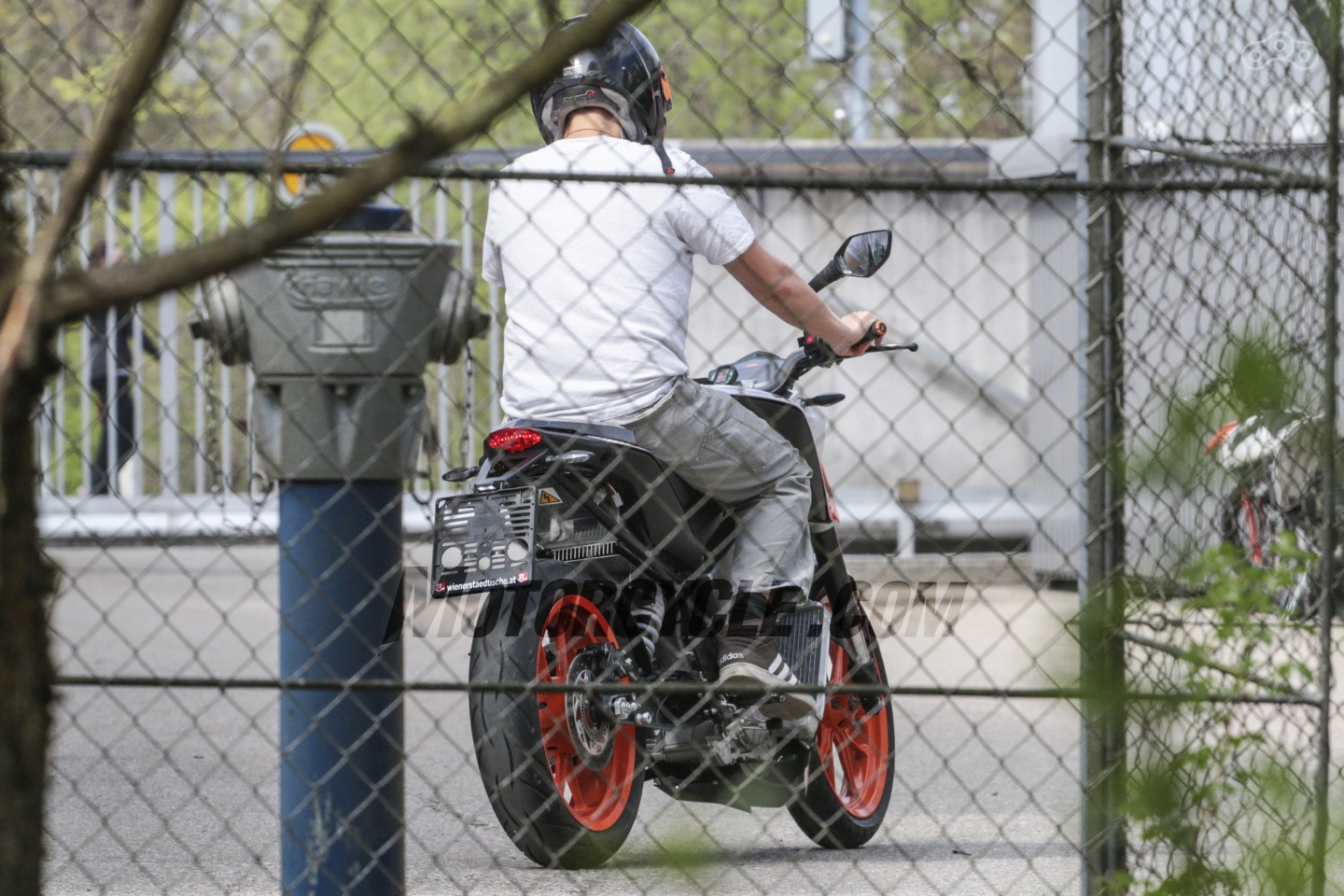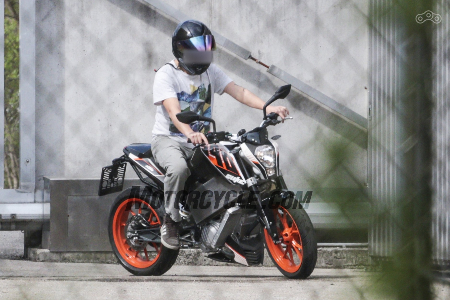 Судя по шпионским фотографиям, посыпавшимся из мировой паутины, компания KTM собирается оснастить 390 Duke электроприводом на заднее колесо.