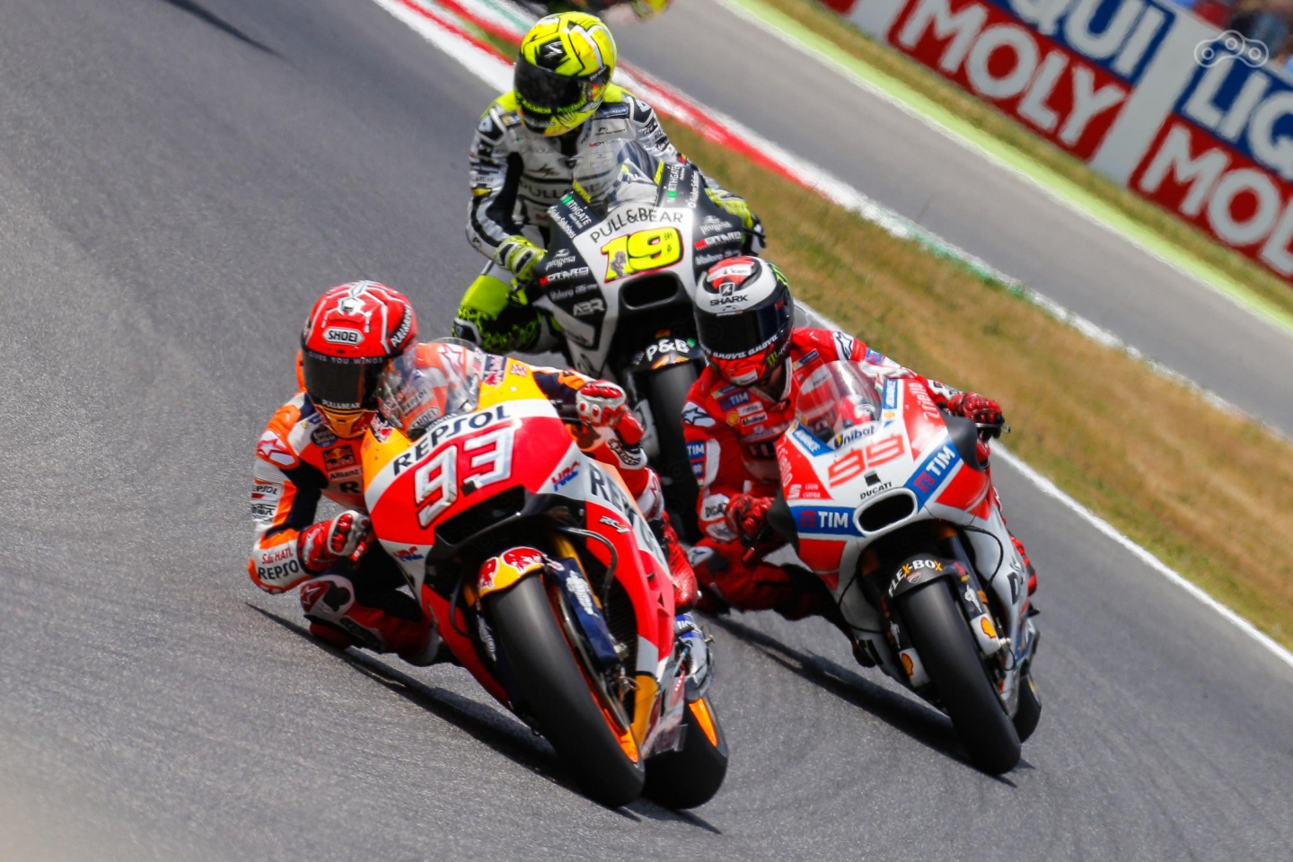 Марк Маркес, Хорхе Лоренцо и Альваро Батиста во время шестого этапа MotoGP 2017